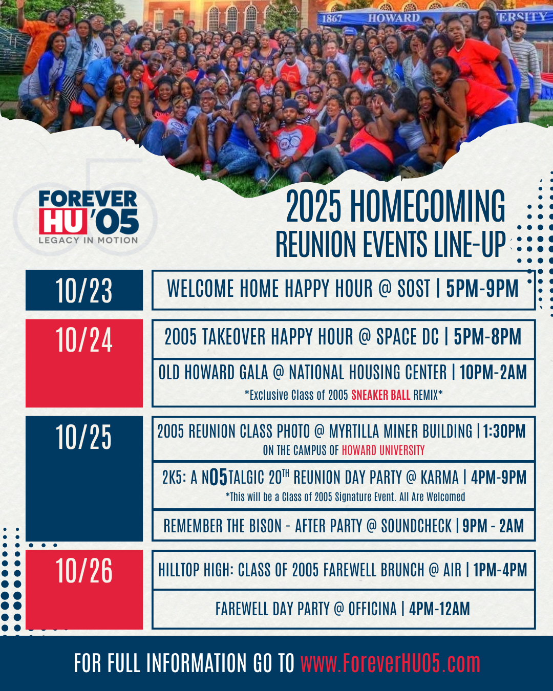Welcome to the official hub for the Howard University Class of 2005’s 20th Reunion!