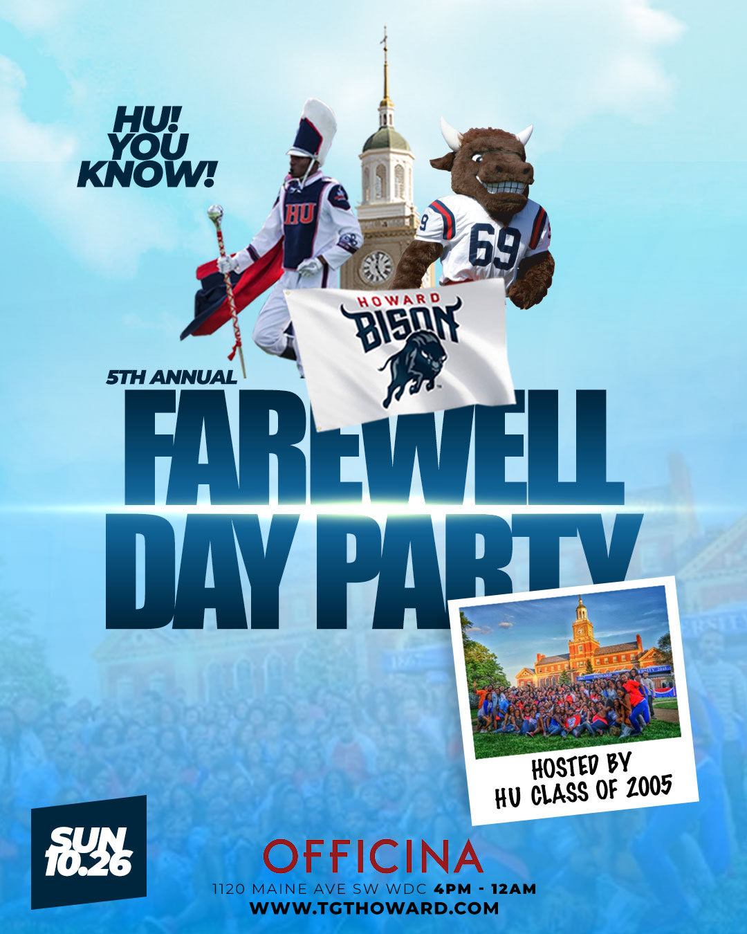 EVENT DETAILS: Might as well keep the Party going! This is your LAST CHANCE to get that hug, get that phone number, have that drink with that classmate, and take in the full essence of Howard Homecoming! Join us for the finale Day Party at OFFICINA!